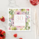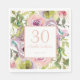 Púrpura, amarilla y color de agua rosa hojas florales y verdes con toallas de papel fiesta de 30 años para mujeres purpurinas de oro personalizadas con su nombre y fecha fiesta.