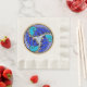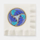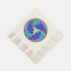 El diseño japonés de lirios de agua da una nueva imagen radical de la pintura digital original de Leslie Sigal Javorek que adorna esta servilleta. Aspecto hecho con azulejos de cerámica en lila, periwinkle, azul, aqua y marfil; en el centro está el hebreo "Chai" (Vida). Bonito suficiente para las vacaciones o fiestas.