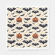 Hay muchos murciélagos grandes y pequeños, y jack o'lanterns también, en esta adorable y divertida servilleta de papel de Halloween.