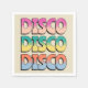 Diseño de texto de estilo retro grunge colorido "Disco Disco Disco Disco" con decoración de letras a rayas