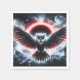 Majestuoso búho desplegando sus alas bajo un eclipse celestial brillante.