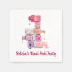 Fun paper party napkin features stacked bottles of nail polish in a variety of colors with customizable pink text. Perfect for spa parties.