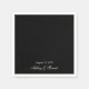 Serve guests with a simple yet elegant, personalized wedding napkins by adding names and a wedding date. The remainder of the napkin is a solid black background.