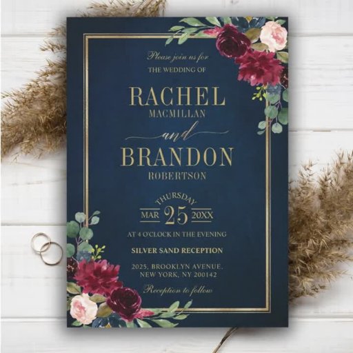 Burgundy Navy Blush Floral with Gold FrameDiseñado por Bliss Design Studio