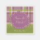 Un fondo revestido de glicinia morada, verde salvia, beige de la leche batida y café marrón, está decorado con un panel de acentos en verde y un rosa con nombres de muestra y una fecha que se puede personalizar para su evento especial. Tanto el rosa como el panel de acentos tienen un aspecto de seda para darle un toque de encanto casero al diseño. Estas servilletas le dan un toque suave y bonito a la recepción de bodas con temática de jardín o a la cena de ensayo. Esta servilleta coincidirá con cualquier otro producto de Country Garden Wedding para que pueda hacer su evento tan coordinado como desee.