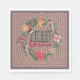 Una corona festividad adornada con elementos de las vacaciones como latas de dulces, un hombre de pan de jengibre, poinsettia, y una caja de regalo enmarcan las palabras "Feliz Navidad". El fondo presenta un patrón repetido que complementa el diseño vibrante y alegre de los Navidades.