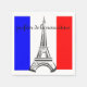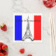 Las servilletas con bandera francesa y la torre Eiffel con las palabras "profiter de la nourriture", disfrutan de la comida.