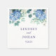 Esta servilleta de papel boda se muestra con una hermosa huella de agua floral de horangea azul. Personalizar este elemento y cambia el texto de ejemplo al suyo con esta plantilla. Imagen con licencia