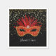 Esta servilleta de papel se muestra en negro sobre una servilleta blanca con estrellas de oro y una estampilla festiva de carnaval de Mardi Gras. Personalizar este artículo o compra tal cual.