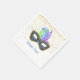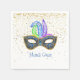 Esta servilleta de papel se muestra en blanco con estrellas doradas con una estampilla festiva de carnaval de Mardi Gras. Personalizar este artículo o compra tal cual.