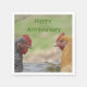 Estas servilletas de aniversario tienen 2 pollos pensando en un halcón volando sobre su cabeza. ¡Perfecto para un fiesta casual de aniversario! Los amantes del pollo apreciarán esta imagen.
