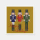 Trio de los Nutcracker de los navidades: Tres Nutcrackers apoyándose uno al lado del otro sobre un fondo de oro sólido. El primer petardo está vestido de azul y blanco con adornos dorados. El petardo central está vestido de rojo y oro con adornos dorados. El tercer petardo está vestido de verde y blanco con adornos plateados. Cada una de estas galletas nudistas está disponible por separado en diversos regalos y productos de Zazzle. Elija cualquiera de los tamaños de las placas fiestas de papel de Zazzle. Edite los campos de texto para decir lo que desee. Borra o borra el texto que no desee.