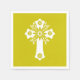 Yellow napkins with a white floral cross. Part of the Floral Cross Christening Collection.