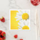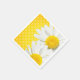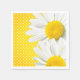 servilletas de papel con puntos de polka amarillos y flores margaritas blancas y amarillas.