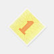 La pintura número uno en naranja sobre un fondo amarillo con líneas naranjas, está impresa en servilletas de papel personalizado, para el primer cumpleaños.