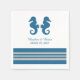 Elegantes y clásicas Nautical Seahorse Boda Paper Napkins Napkins con un par de caballitos de mar sencillos y un conjunto de rayas en azul marino oscuro y gris. Estas toallas náuticas con temática de playa se pueden personalizar fácilmente con los detalles de tu boda. Para obtener más opciones de personalización, haga clic en el botón Personalizar.