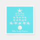 Las toallas de Navidad tropical azul Aqua. La estrella de mar blanca forma un árbol sobre servilletas de papel azul brillante con texto personalizado blanco en la parte inferior para el nombre de la familia, o cualquier otro texto.