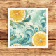 Toallas de naranja de cítricos vibrantes con acentos de limón y detalles verdes frescos. Perfecto para picnics de verano, brunch de primavera y mesas muy alegres.