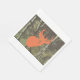 Las servilletas de la fiesta de cumpleaños que incluyen el ilustracion de una cabeza de ciervo naranja sobre un fondo de camuflaje. Personaliza el número de cumpleaños.
