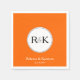 Esta sencilla y moderna servilleta boda presenta un círculo blanco con el monograma de la novia y el novio sobre un fondo naranja. El texto del personalizable, cerca de la parte inferior, muestra los nombres de la novia y el novio y la fecha de su boda.