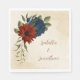 Una servilleta única de papel boda con flores azules y naranja quemadas románticas y hojas verdes. PARA OBTENER MÁS PRODUCTOS COINCIDENTES, haga clic en la colección superior o póngase en contacto conmigo.