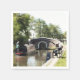 Diseño artístico de una lancha estrecha que se acerca a un candado y a un hombre que pesca. Los barcos del canal, conocidos en el Reino Unido como barcos estrechos, se utilizaron originalmente para transportar mercancías por todo el país. Ahora se utilizan principalmente para el ocio y atraen a personas de todo el mundo para disfrutar de nuestro campo rural. Estos barcos parecen muy bonitos con sus camarotes de colores vivos, azules, rojos o verdes. Flores y diseños de castillo también adornan los barcos más tradicionales.
