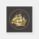 Un impresionante barco de alta calidad dorado con mástil sobre un fondo negro que contrasta hace una maravillosa elección de servilleta fiesta para los aficionados a la vela o al barco. Agregue su propio texto personalizado para personalizar su evento o uso personal.