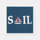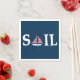 Ilustracion de diseño de textos náuticos con decoración de veleros de fondo azul oscuro. Es posible cambiar el color de fondo y añadir uno diferente al diseño con su elección.