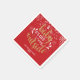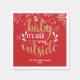 Servilletas de papel de Navidad personalizadas con la frase "Bebé Está Hacía Frío Afuera", en un elegante texto con tipografía dorada y blanca sobre un fondo rojo con copos de nieve que caen con el nombre de la familia y el año. ¡Perfecto para reuniones y fiestas de Navidad! Diseñado por Thisisnotme