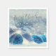 Un diseño elegante con bolas de Navidad azul sobre un fondo de bokeh.
