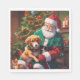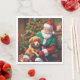 Una servilleta personalizada con un perro sentado en el regazo de santa y contándole lo que sus navidades desean.