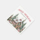 Añada un toque festivo a su mesa de vacaciones con esta encantadora servilleta fiesta de Navidades con una acogedora cabaña de invierno con acuarela. En la parte superior, "Feliz Navidad" se imprime en una ligera curva, creando un aspecto alegre y acogedor. También puede cambiar el saludo a "Felices Fiestas", "Saludos de temporada" o cualquier mensaje que se ajuste a su celebración. Debajo del saludo hay un espacio para el nombre de su familia o una frase corta en personalizado en una fuente clásica serif. A lo largo de la parte inferior de la servilleta se encuentran las obras de arte detalladas: una cabaña cubierta de nieve con una corona en la puerta, pinos y bayas huecas, con humo acurrucada desde la chimenea para completar la cálida escena del invierno. Perfecto para cenas Navidades, fiestas de vacaciones o entretenimiento de temporada. Todos los tipos de letra, texto y colores se pueden personalizar para que coincidan con el estilo festivo.