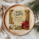 Envíe sus cálidos deseos de vacaciones con este diseño de Navidades de inspiración vintage con audaces poinsettias rojas y blancas enmarcadas en adornos dorados. Los ricos colores y los detalles clásicos crean un ambiente elegante y rústico, perfecto para añadir un encanto atemporal a sus vacaciones.