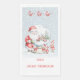 Coloridos Navidades Papel de la toalla de invitado - Santa con pequeños ayudantes sonriendo con alegría en la escena nevada y deseando a todos los niños Feliz Navidad.