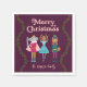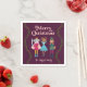 La servilleta de los Navidades es divertida y cuenta con ilustraciones de gato, perro y ratón dibujados a mano como personajes de ballet peatonal. El fondo es rojo.