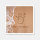 Ilustracion de Navidades soleados con un muñeco de nieve y Feliz Navidad escrito en la arena en la playa al lado del océano.