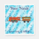 Un motor de vapor y un coche de pasajeros con el modelo alemán Marklin O, rediseñado, en torno a los años 40. Al motor se le ha dado digitalmente un nuevo esquema de color para Navidades, conservando su carácter. También aparece el texto italiano "Buon Natale". Añade tu propio texto adicional.