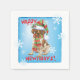 Celebra la temporada de fiestas con un lindo cachorro de pintor alemán de cortos con un gorra y una bufanda en medio de una ráfaga de copos de nieve. ¡Felices Howlidays!