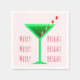 Estas lindas servilletas para tu fiesta de vacaciones tienen un martini verde con un traje de caramelo rojo y blanco. El texto en los lados dice "Feliz Feliz Feliz Feliz y brillante brillante brillante brillante".