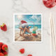 Una estrella de mar con sombrero de Santa y gafas de sol se relaja en una tumbona junto al océano con un cóctel