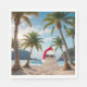 Nevador de arena fina con gorro de Papá Noel en una playa con palmeras
