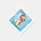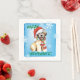 Celebra la temporada de fiestas con un adorable cachorro Soft Coated Wheaten Terrier vestido con un sombrero de Santa y una bufanda en medio de una ráfaga de copos de nieve. ¡Felices Howlidays!