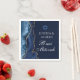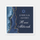 Elegante ágata azul marino y oro decora esta servilleta de papel fiesta B'nai Mitzvah para una familia judía que celebra que su hijo sea llamado a la Torá. Los dos nombres están escritos en un bello guión formal bajo la Estrella de David para una celebración conjunta.