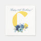Add a personalized touch to your party decor with these elegant 20th birthday napkins. Featuring a striking yellow monogram "C" and a vibrant blue floral bouquet, these napkins include a classic navy script that can be customized for any age. The crisp white background and delicate greenery make them a beautiful addition to birthday luncheons, garden parties, or milestone celebrations.