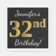 Servilleta De Papel Negro, Faux Gold 32nd Birthday + Nombre personaliz