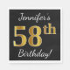 Servilleta De Papel Negro, Faux Gold 58th Birthday + Nombre personaliz