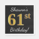 Servilleta De Papel Negro, Faux Gold 61st Birthday + Nombre personaliz