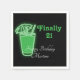 Una bebida en tu fiesta de 21 años; bebida de paraguas verde neón con texto verde que dice Finalmente 21 y texto de cumpleaños con tu nombre.