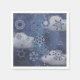Copos de nieve azules y blancos sobre nubes blancas bajo un cielo estrellado.