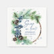 Nieve en el amor de invierno ducha de novia servilletas de plantilla, berries de invierno azul polvoriento sobre ramas de pino nevado copos de nieve moderna fuente casual personalizada de ducha de novia vajilla de mesa